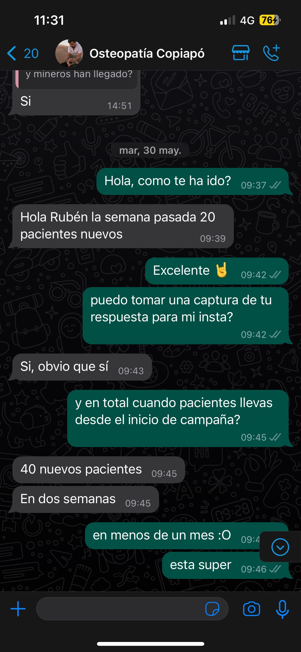 ResultadoPasó de depender del boca a boca a atraer semanalmente decenas de nuevos pacientes para su servicio musculoesquelético.